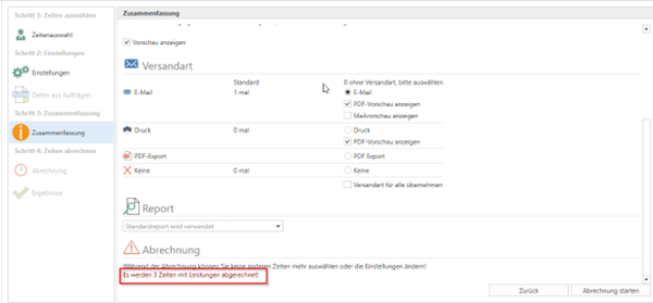 Nun können die Zeiten abgerechnet werden.
