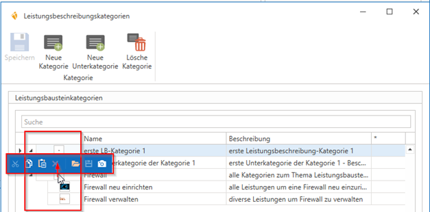 In der „Leistungsbeschreibungskategorien“-Verwaltung können Sie die von Ihnen gewünschten Kategorien und deren Unterkategorien festlegen. Wenn Sie z.B. mit vielen Leistungen arbeiten, kann die gesuchte Leistung durch die jeweilige Kategorie viel schneller gruppiert und somit gefunden werden.