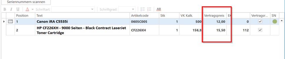 - Im Stammblatt wurde für vertragsrelevante Positionen ein neues Feld „Vertragspreis“ hinzugefügt. Mit