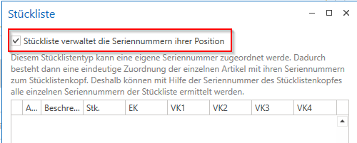 Stückliste verwaltet Seriennummern