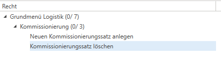 Dieses Recht gibt an, ob ein Nutzer einen Kommissionierungssatz für einen Auftrag erstellen darf. - Neues Recht "Kommissionierungssatz löschen":