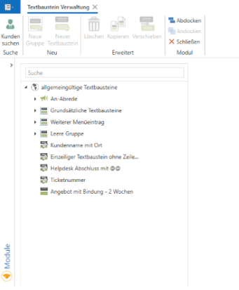Das Modul Textbaustein Verwaltung finden Sie links unter Administration.