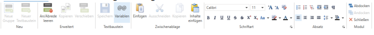 Bei Start des Moduls werden die allgemeingültigen Textbausteine geladen. Hier sind 3 Funktionen kombiniert.