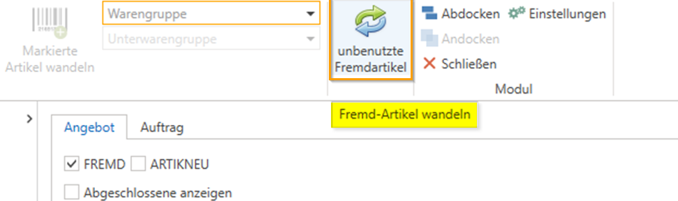 und im folgenden Fenster auf [unbenutzte Fremdartikel].