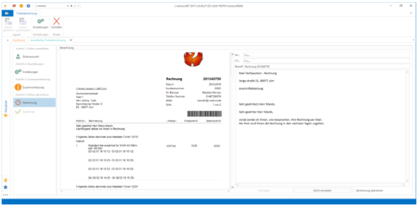 Wodurch zur Abrechnung zurückgekehrt wird und ggf. seine E-Mail Vorschau der Rechnung für den Versand zu sehen ist. Wenn hier alle stimmt wird die Rechnung durch klicken auf [Vermailen] versendet.