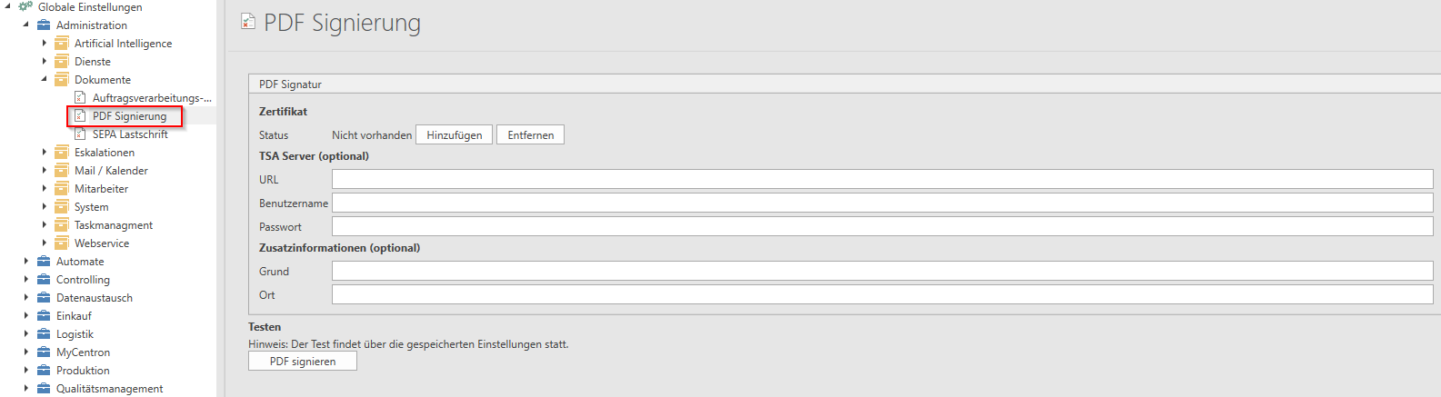 Wir empfehlen Ihnen für XRechnung auch noch die PDF-Signierung zu aktivieren.