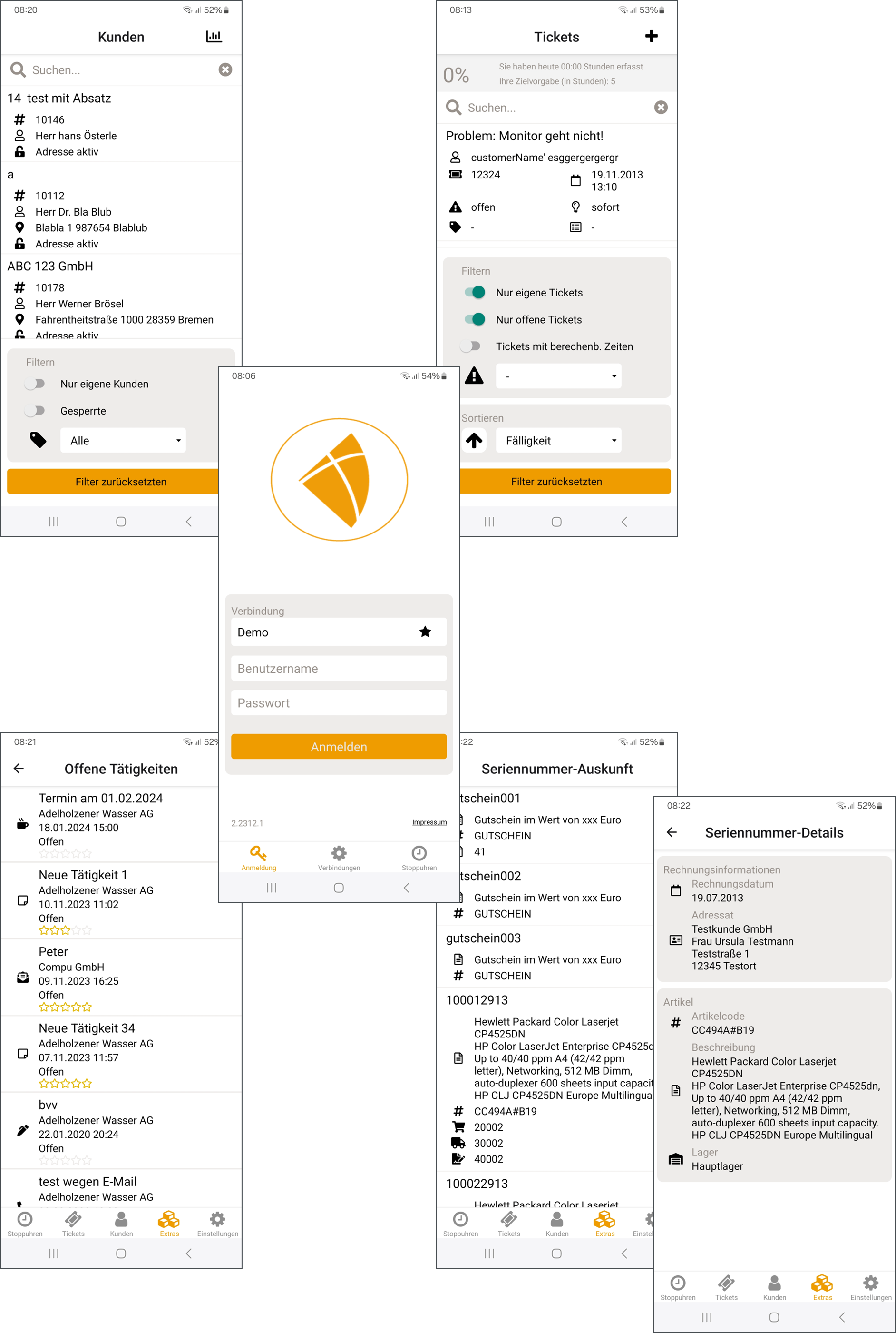 - Erweiterte Kundensuche (bspw. Filterung nach Kundenart, Ort oder Volltextsuche)