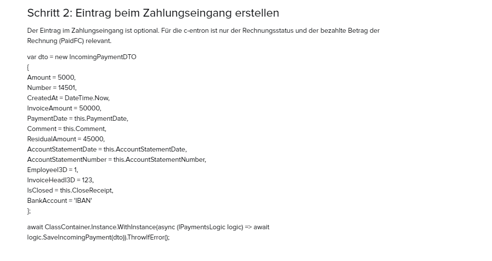 Web-Service API - Beispiel: Zahlung zur Rechnung eintragen