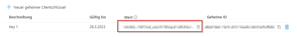 - Client-Secret ist der zuvor erstellte Clientschlüssel