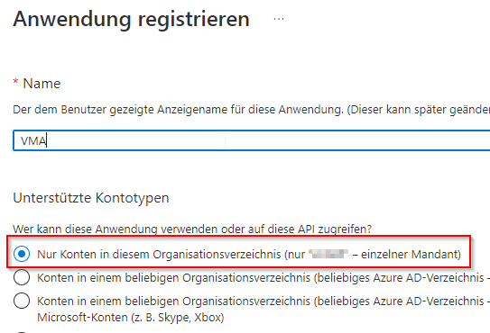 - Benutzername und Passwort für das Postfach, auf dass der VMA zugreifen soll - - TenantId ist die Mandanten-Id von Azure