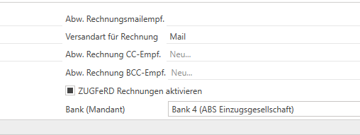 Previously, the bank details used were defined globally via the settings. With this new feature, a different client bank can now be selected for each customer—particularly relevant for constellations with Assignment companies or factoring-based payment processes.