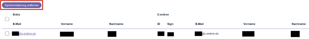 In this section, the administrator can monitor the synchronization status between Entra ID and c-entron users and update synchronization for many users in bulk. Synchronization is required for users to log in with Microsoft.