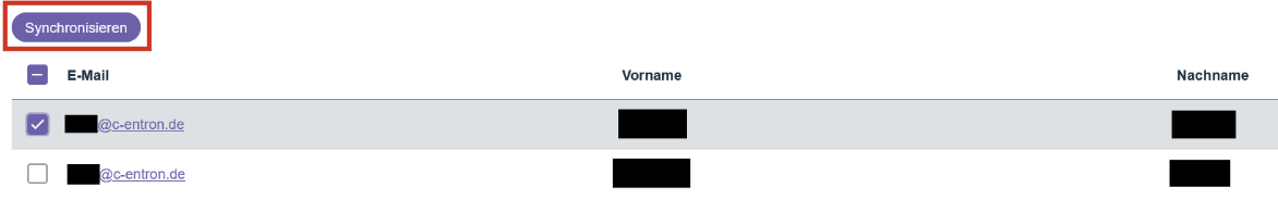 As soon as a corresponding account exists in c-entron, the user is added to Ready to synchronize displayed.