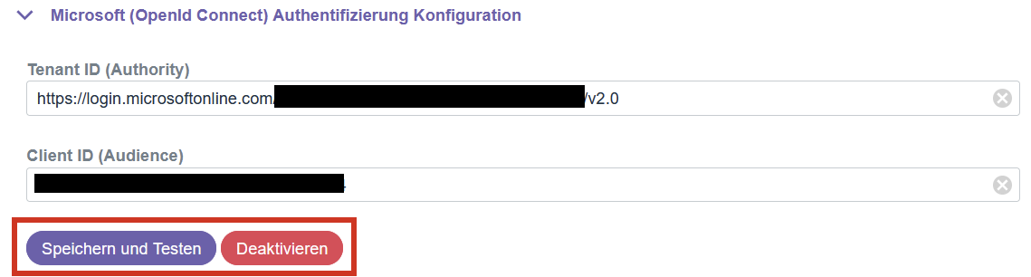 The Microsoft login is considered activeif a client URL and client ID are configured.