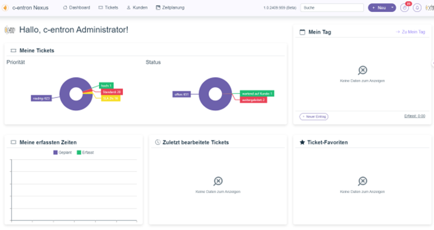 The dashboard is divided into different sections that can be customized depending on the user role and individual settings. For example, administrators have access to advanced ticket management features, while standard users can focus on their assigned tasks.