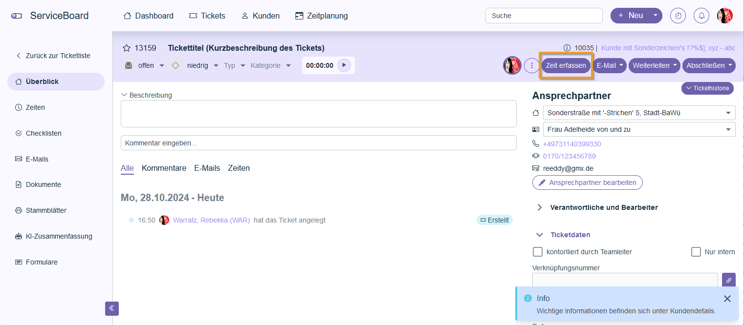 The core function of the ServiceBoard is ticket management. Customer inquiries, orders, and internal tasks are managed here as tickets.