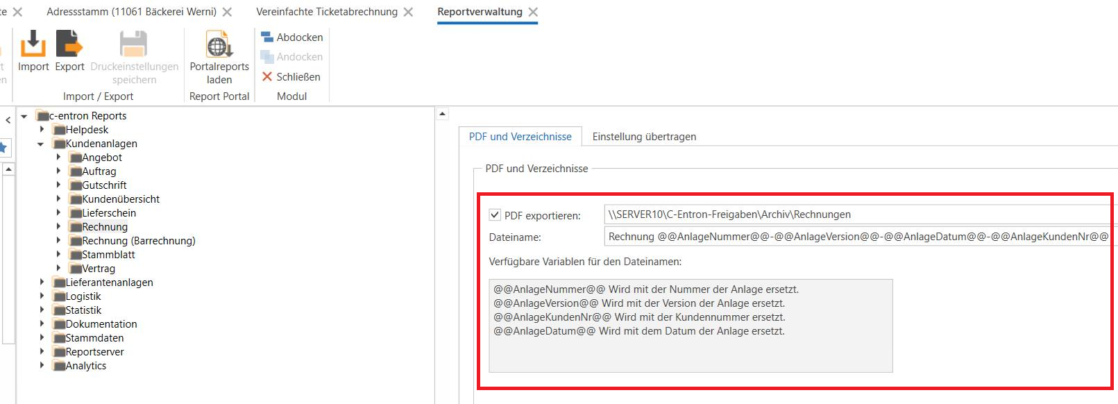 The log file of the c-entron web service also contains information about any errors that occur during this PDF export (if the folder does not exist, is read-only, or cannot be accessed).