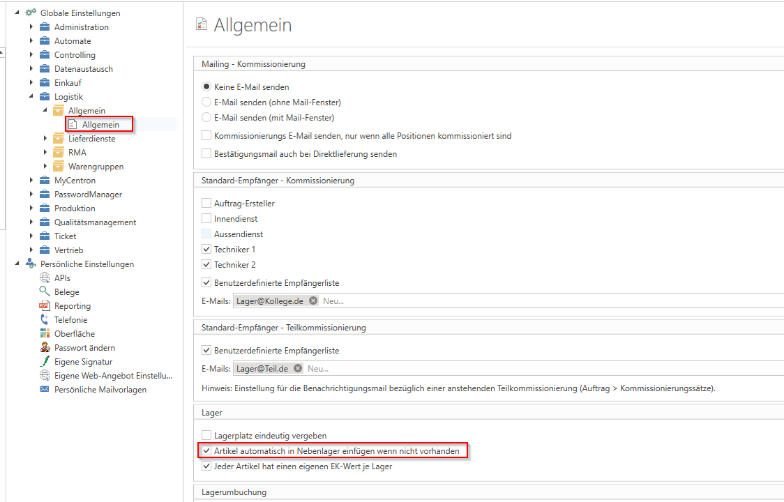 If this option is disabled, a message appears when an item is returned to a destination warehouse where this item did not previously exist. This message indicates that the item is not kept in stock and therefore cannot be posted there.