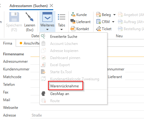 In the address master, you can create a "return of goods" under "Additional" without calling up a specific customer.