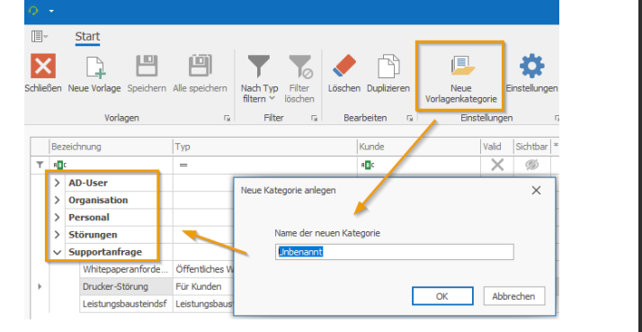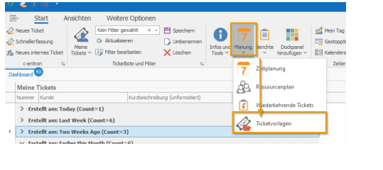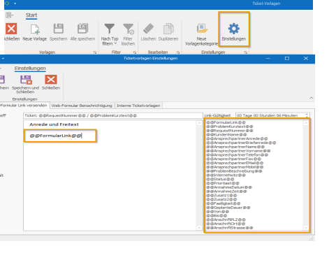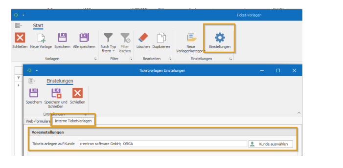If a default customer for internal tickets has already been selected before importing templates, the imported templates will already be presented with this customer. To do this, please select a default customer for internal tickets under Settings.