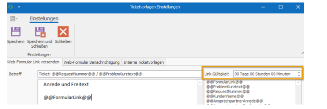 You can set the link validity here. Please note that this value is globally valid for all links sent for the form. This value is checked when the link is accessed, so if you change this validity after sending the email, this value will also be used here.