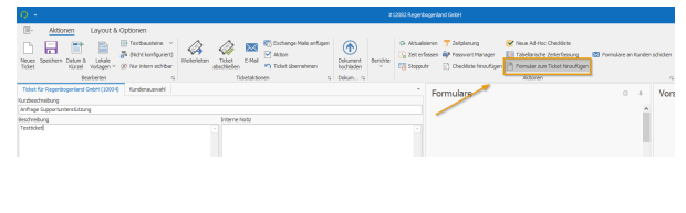 Existing ticketYou can also add a form to an existing ticket in the open ticket: