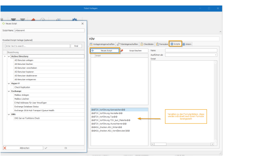 The script can be filled in accordingly using the variables based on your defined form fields, and you can use this for quick further processing (e.g., creating an AD user). The data in the form fields is thus used and inserted into your PowerShell script via variables. Now your processor can simply insert this script into the front end and apply it.