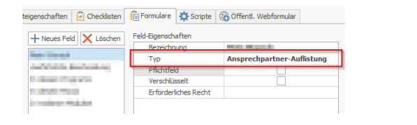 For new form fields, you can choose between the following definitions under "Type":
