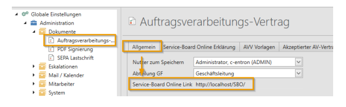 The settings for AV contracts can be found in c-entron.NET under Global Settings -> Mail/Calendar -> Documents -> Order Processing Contract