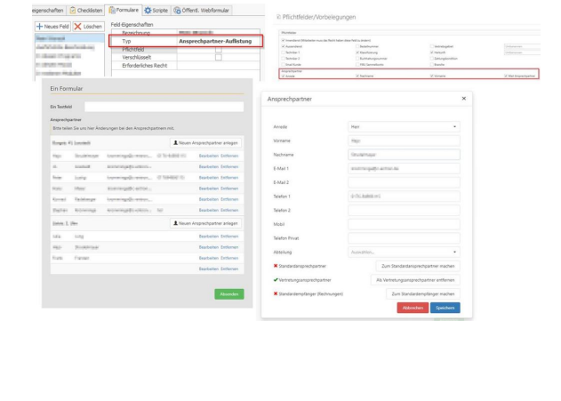In the "Contact List" field type, your customer can make changes to the contacts and add new ones.