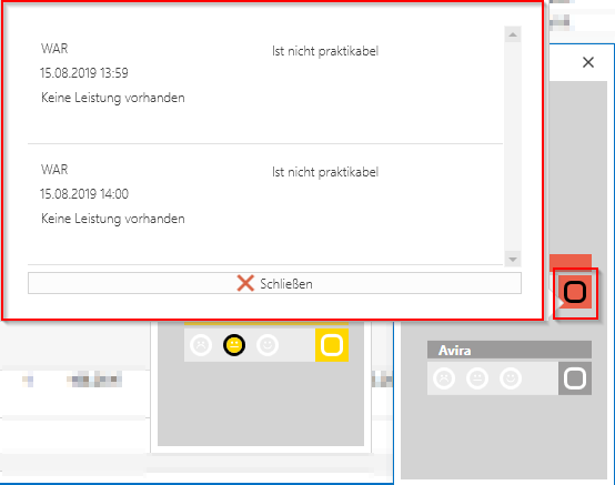 The course of the evaluations and the reasons entered by colleagues can be viewed by clicking on the History button (to the right of the smileys).