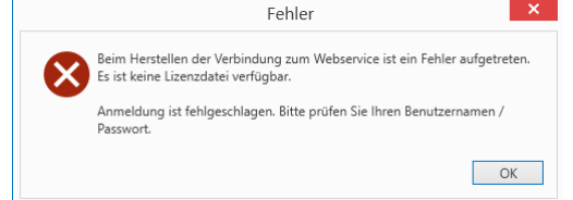 A: The most common reason for this is that the web service can't connect to the license server to get the licenses. Check whether the web service can reach the c-entron license server (https://office.c-entron.de/) (firewalls and similar may block this) and also check whether the web service can connect to the CodeMeter dongle to identify itself to the c-entron license server.If you want to run the Riverbird WebService on a different web server than the c-entron WebService and you do not have CodeMeter installed there, you can also copy the license file of the c-entron WebService from "C:\ProgramData\c-entron software gmbh\centron Web-Service" to the corresponding directory with the same name on the Riverbird WebServer. Please note that a license file is only valid for 10 days.