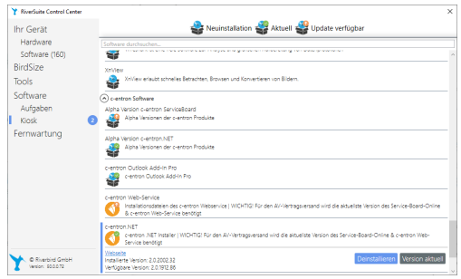 ...open the "RiverSuite Control Center" and install or update the desired software yourself from the packages provided via the "Kiosk":