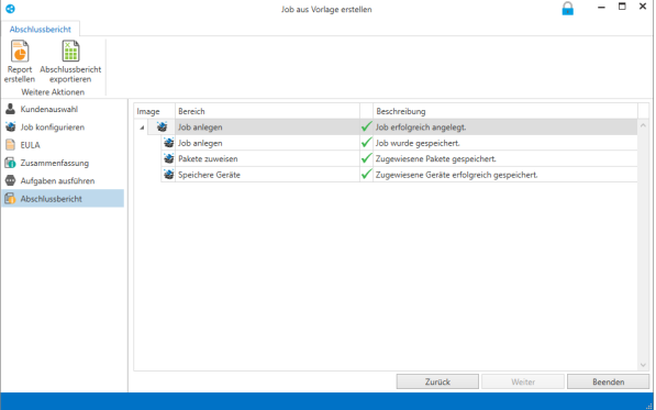 The final report provides you with an overview of the tasks that were performed and whether they were successful.