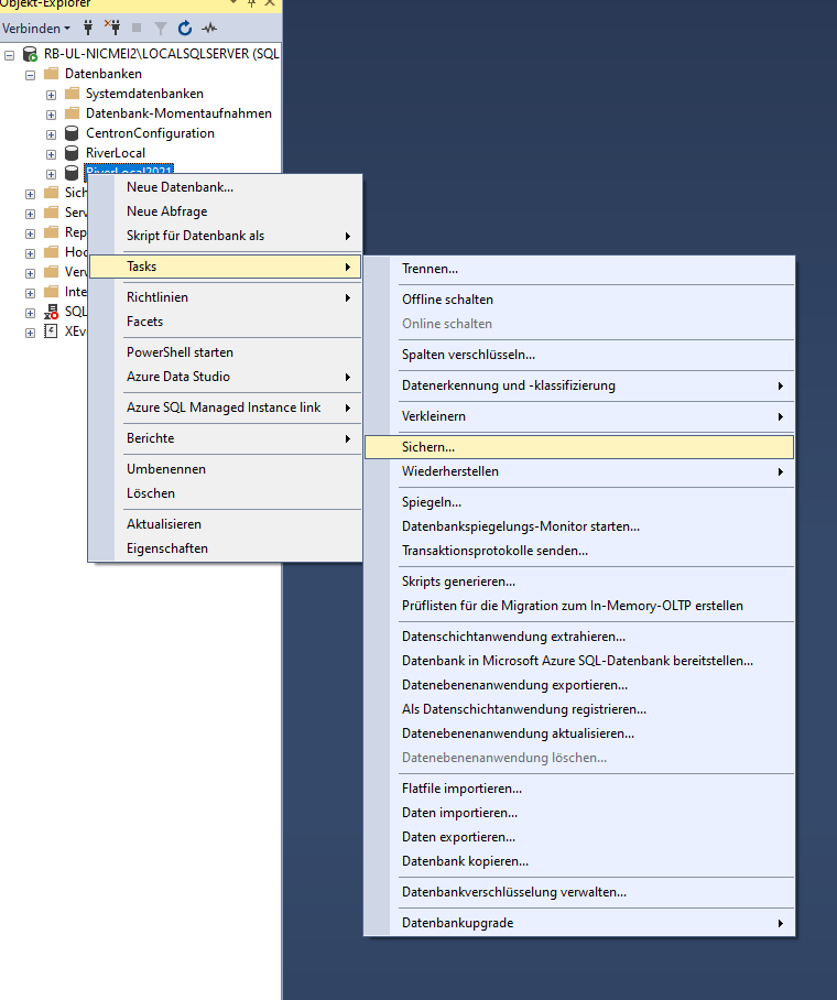 Select "Restore database" from the context menu.