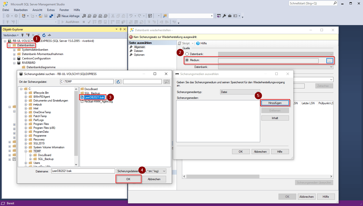 In the following dialog box, you can select the .bak file from the C:\Temp folder.