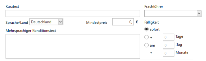 The detailed condition text can be stored here. The drop-down menu "Language/Country" allows you to store a different condition text for each language if documents are also to be created in foreign languages.