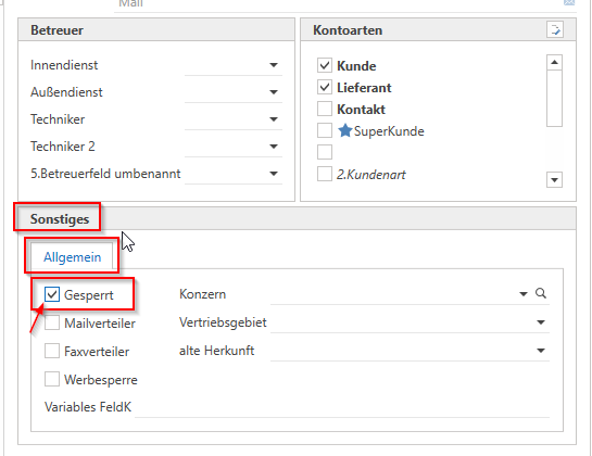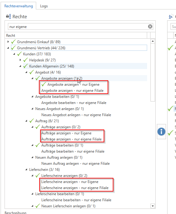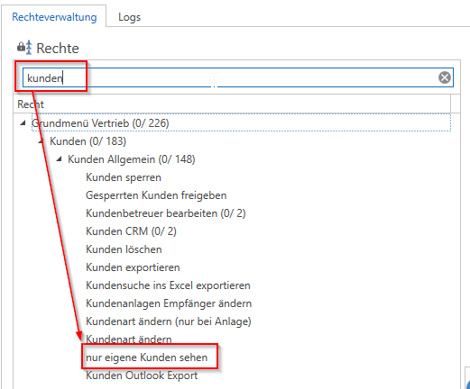 Check in the rights management under "Basic menu Sales -> Customers -> Customers general" whether one of the rights groups of the affected user has been assigned the restrictive right "only see own customers." In this case, only customers for whom this user is stored as "support person" (ADM, IDM, technician, etc.) can be found.