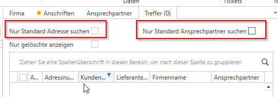 In the "Hits" tab, uncheck the boxes next to "Standard address only" and "Standard contact person only."