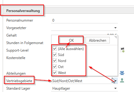 In Employee Management, check whether the user in question is assigned to specific sales territories in the "Sales Territories" field in the "Personnel Management" area.