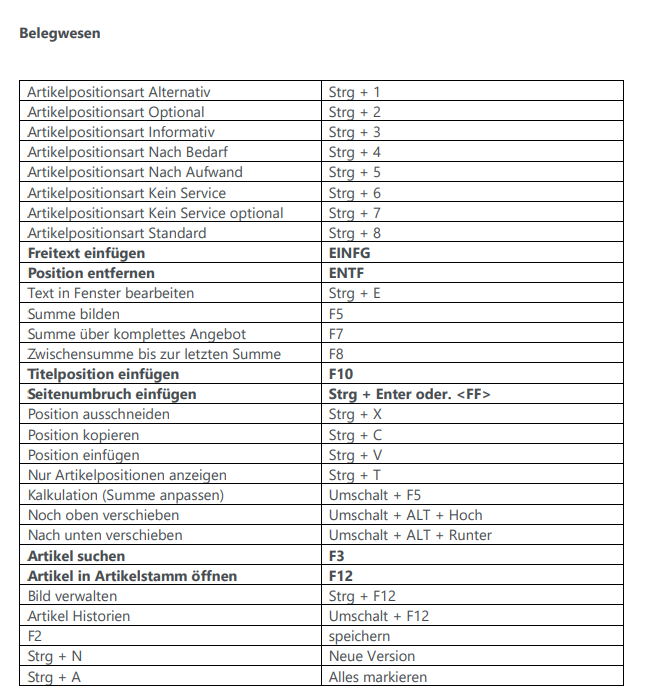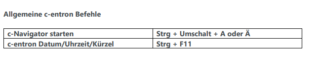Keyboard shortcuts in c-entron