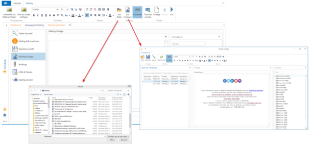 The body of the mailing can be filled with predefined variables containing data from the source file, e.g., salutation and name, to make the mailing more personal. You define the variables directly in the body of the mailing.