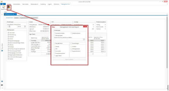 In the management info section of c-entron.net, you will find a revised and polished interface with improved performance when opening the module. The data is no longer loaded immediately, but only after clicking on [Refresh] (arrow symbols) in the menu bar. Loading takes place in the background and the data is filled in gradually, meaning that the interface remains fluid during loading.