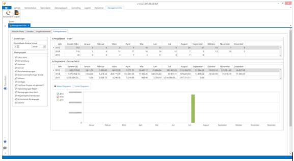 The view in the "Quotation stock" and "Order stock" tabs has also been revised so that the number of quotations or orders is now displayed above the total (net) and the chart for the total is displayed directly below.