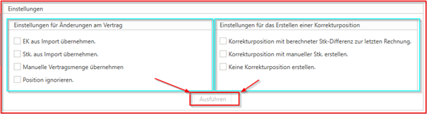 You can also "transfer the purchase price and/or quantity from the import" to the contract for all "selected items." To do this, use the item filter to display only items with a difference (in purchase price and/or price) in order to obtain this data more quickly/exclusively, if necessary, or you can filter the displayed contracts using the "calculation" or "billing interval" filters.
