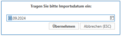 Note: If you select "Settlement date" assigned, the first date "found" is used as the "MSP invoice date" if you have not assigned one here, you will be asked for a date during import. This helps you to identify the import records in the MSP evaluation, assign them to an import, and filter them, but also to check them. If you start an import for a collector/interface and select a date for which there is already an import for this interface, a message appears stating that data already exists for this date and asking whether this "overwritten" this allows you to prevent multiple imports or "overwrite" an existing "incomplete" or "incorrect" import.