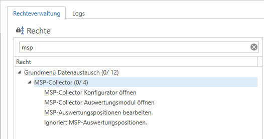 In the rights management section, you will find 5 new rights for the modules that you can assign to your test users. Simply search for "MSP" and they will be displayed immediately.