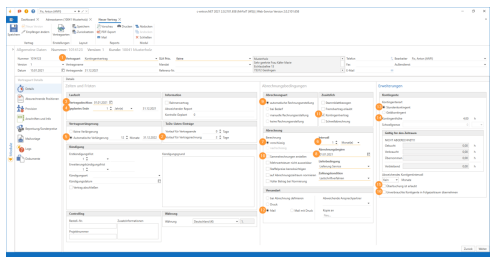 The contract can now be billed as created from January 1, 2021. The sub-item groups valid for the contract are based on the global settings