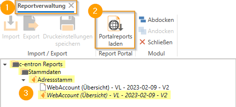 It can be downloaded via the Report Portal using the [Load Portal Reports] button and can then be found under Master Data - Address Master.