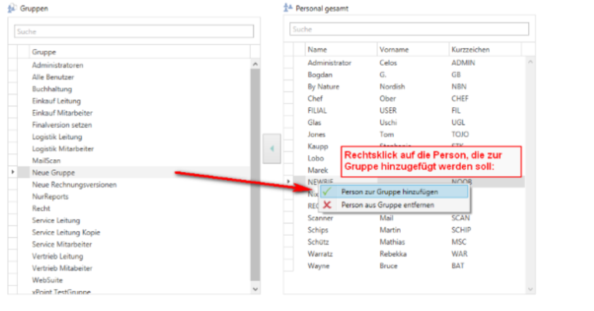By right-clicking on the person and then selecting "Add person to group," individual members can now be added to the group.
